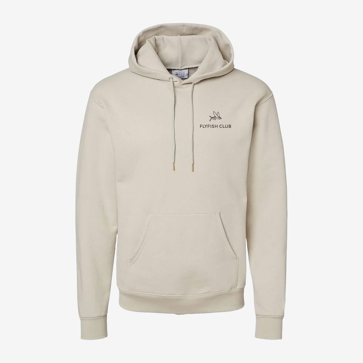 The hoodie features rib cuffs and hem, soft brushed inside. Made in the USA.